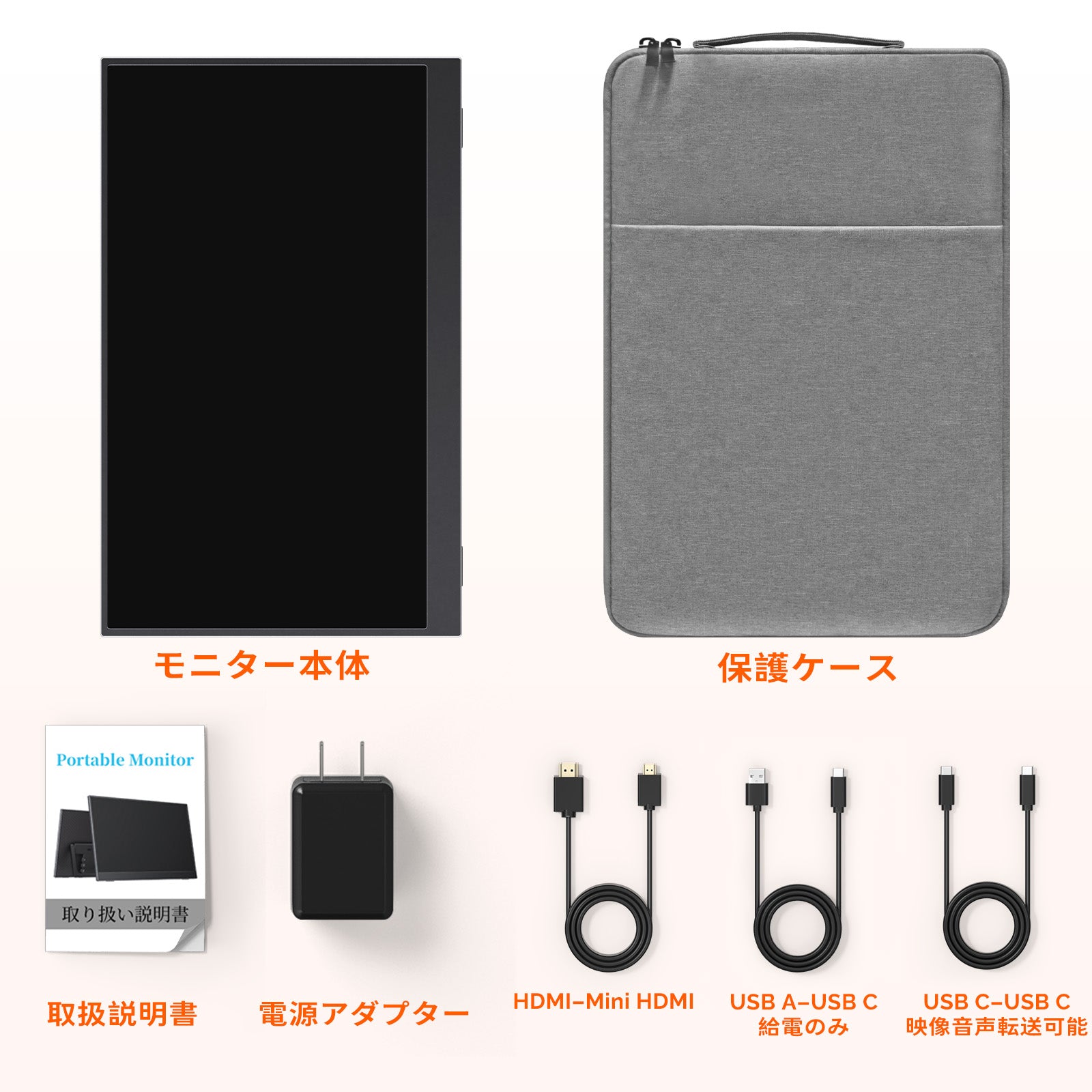 【収納ケース付き&携帯便利】外出時、専用収納ケース付属なので収納、保護、手提げ、これで全部解決!広い開け口で簡単に収納、取り出しができます。側面ポケット付きでモニターとガジェット類をまとめて持ち運びやすいです。