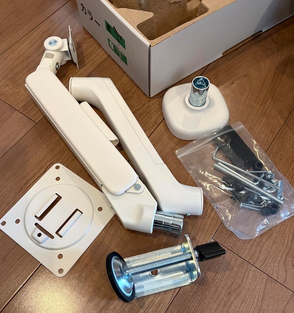 【ご注意・安心なサポート】 ①高さや角度を調整するには、必ずモニターアームを机に取り付けてから、モニターと取り付けた後調整してください。上部アームの高さが調整できない/下がらない場合は、アームの「+」「−」マーク付近のネジを「−」方向に最後まで回し、アーム上部を適度に押し下げてみてください。少し力を加えることで、高さが調整できることがあります。調整後、高さを固定したい場合は、「+」方向にネジを適度に締めてください。 ②商品は出荷前に全数検品しましたが、万が一初期不良や、付属品漏れがある場合、弊社にご連絡ください、責任をもって対応いたします。 ③商品に関してもし何かご不明な所がございましたら、いつでもお気軽にお問い合わせくださいませ、弊社はアマゾンだけでなく、メールと電話でも対応できます。保証期間内に故障が発生した場合(不適切な使用による破損を除く。また、検証が必要な場合あり)、無料で部品・本体交換対応できます。