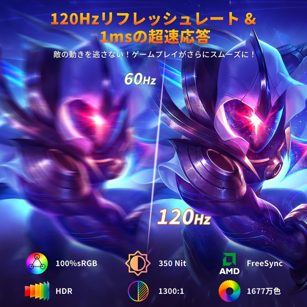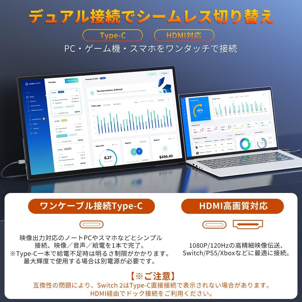 【多機種に対応】 ノードパソコン、デスクトップ、スマホ、PS3/PS4/PS5、XBOX ONE、Wii又はNintendo Switchなどにも対応しています。遅延などがなくゲーム用としても優秀。ドライバーを追加することなくすぐ使用でき、120Hzの高速応答も可能なので、FPSゲームやアクション映画など動きの速いコンテンツを楽しめます。拡張モード・複製モードは両対応の上、横表示はもちろん、縦表示でも簡単接続できます。