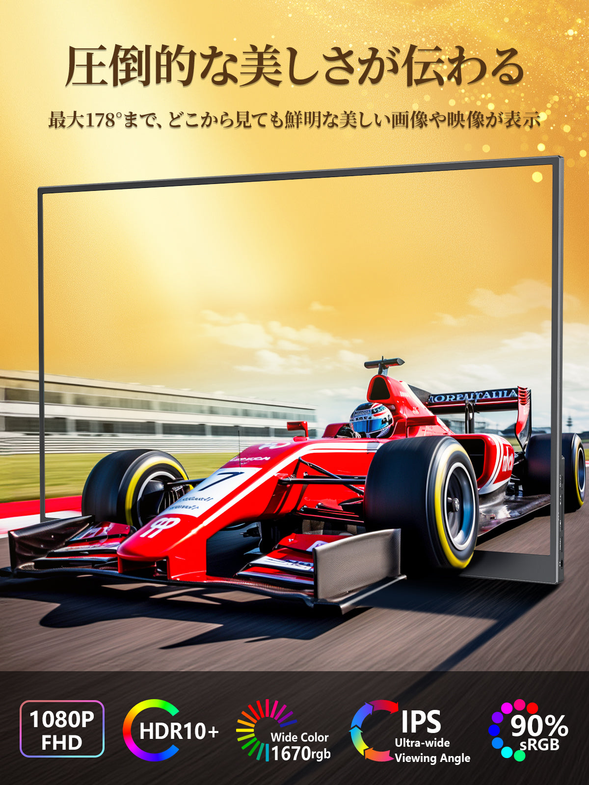 【IPS非光沢パネル&フルHD&ブルーライト軽減】 ①モバイルモニターは可視性に優れた非光沢(ノングレア)IPS液晶パネルを採用されるため、光の反射を抑え、視野角による輝度変化が少なく、最大178°まで、どこから見ても鮮明な美しい画像や映像が表示できます。A+規格・純正新品パネルを使用しで、ドット抜けなし保証があるため、ご購入後安心して長期間お使いいただけます。 ②1920×1080のフルHD解像度で、ゲームも映画もリアルな臨場感を体感できます。 ③ブルーライト軽減機能を搭載して、目への負担を最小限に抑えます。長時間使用でも目の疲れを軽減し、目を守りながらストレスなく作業やゲーミングを楽しめます。